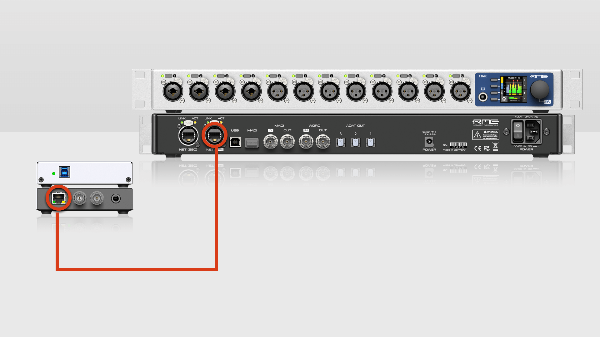 Simply connect the Digiface AVB and 12Mic via Cat5 ethernet cable