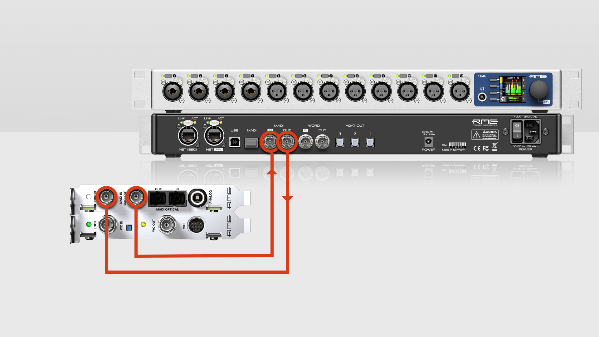Simply connect the HDPSe MADI and 12Mic via MADI