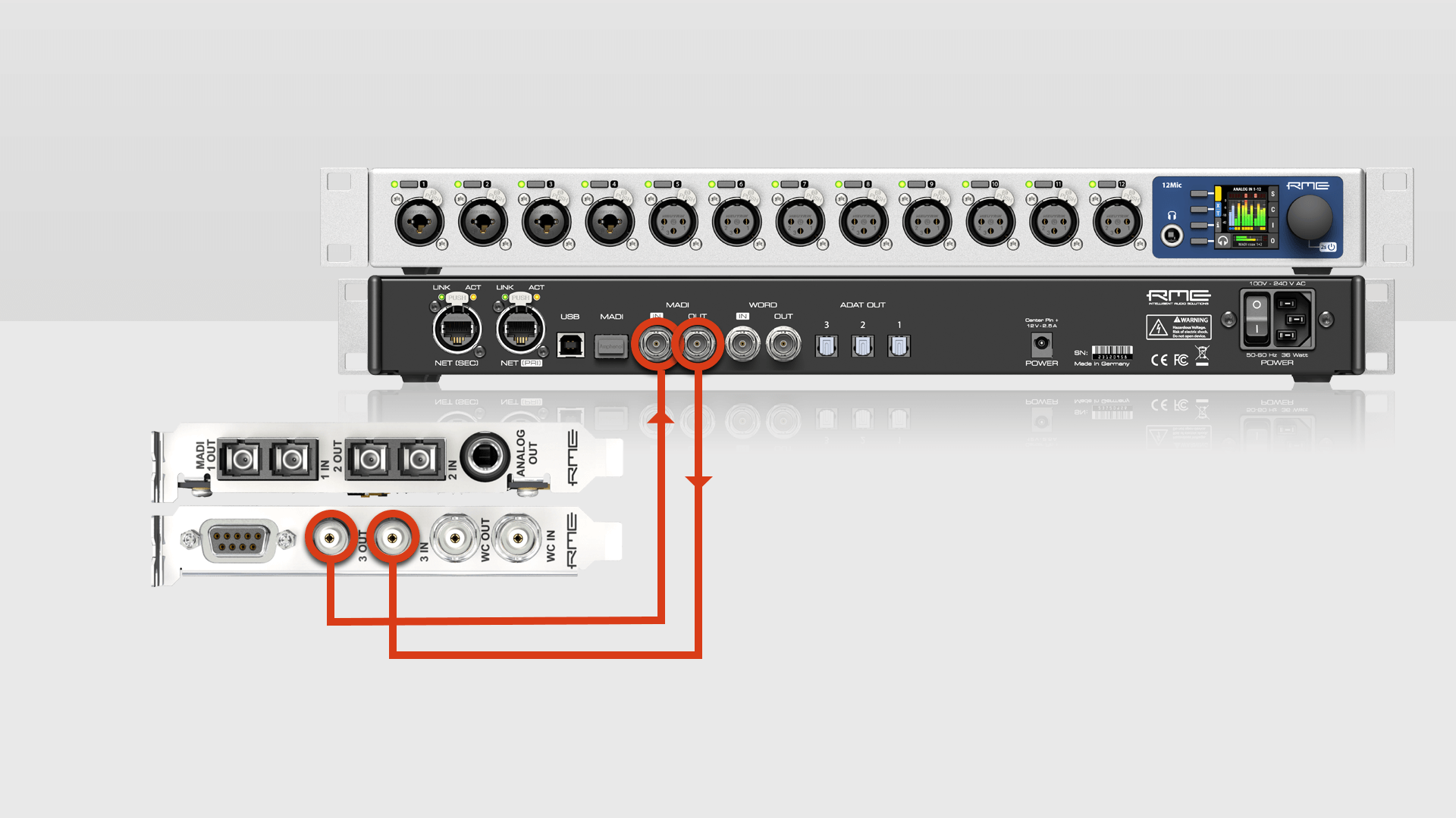 Simply connect the HDPSe MADI FX and 12Mic via MADI