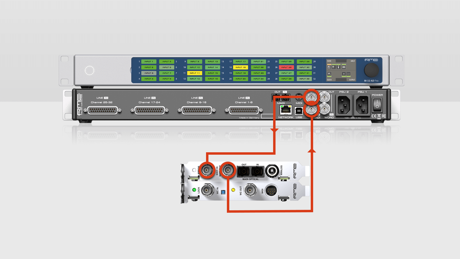 Simply connect the HDPSe MADI and M-32 Pro via MADI